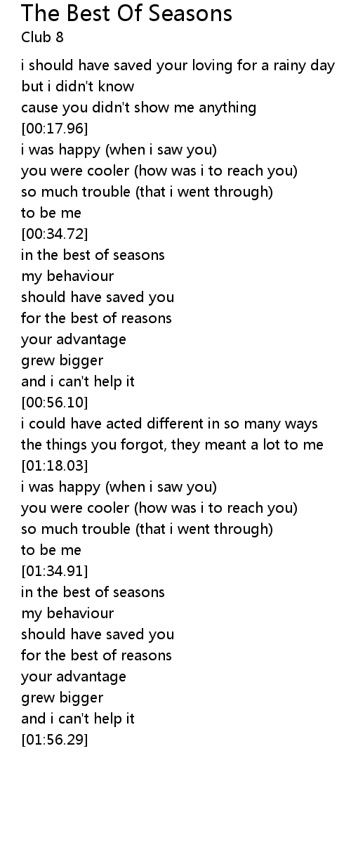 The Best Of Seasons Lyrics