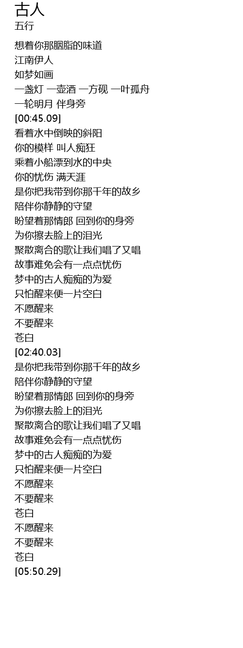 | [05:19.66] | 梦中的古人痴痴的为爱 |
