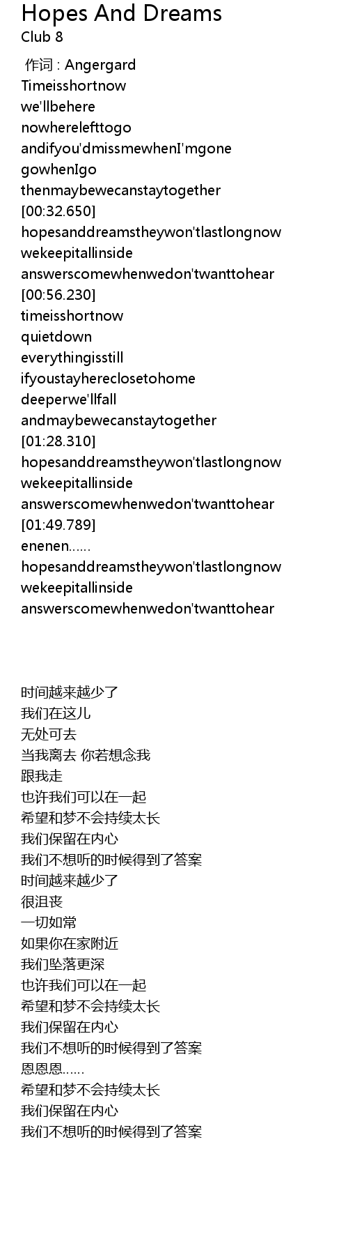 | [02:32.950] | hopesanddreamstheywon'tlastlongnow |
