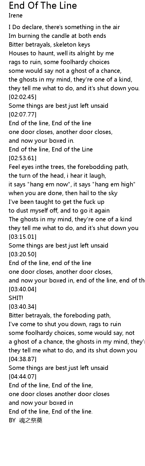 | [03:27.85] | and now your boxed in, end of the line, end of the line |