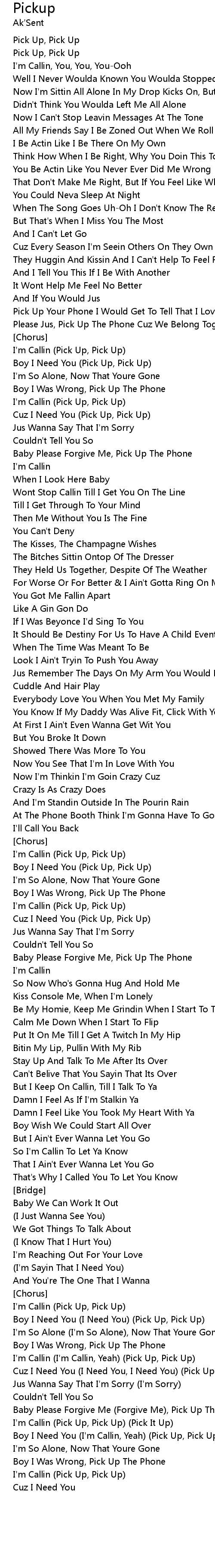 I'm Callin (Pick Up, Pick Up) (Pick It Up) |