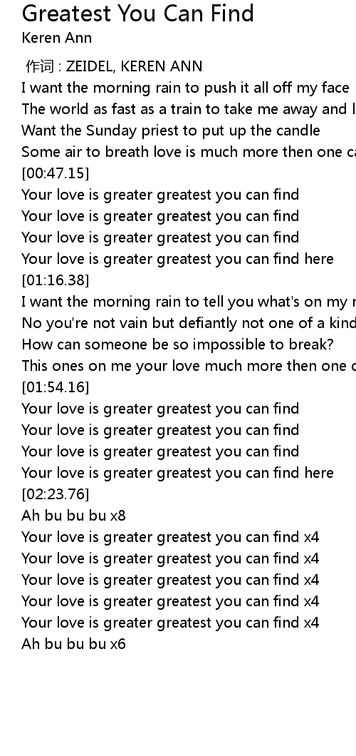 | [03:22.17] | Your love is greater greatest you can find x4 |