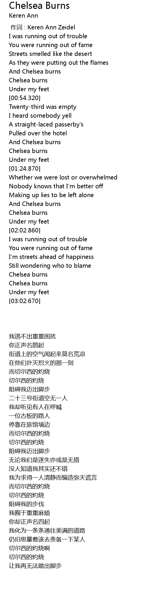 | [00:00.00] | 作词 : Keren Ann Zeidel |
