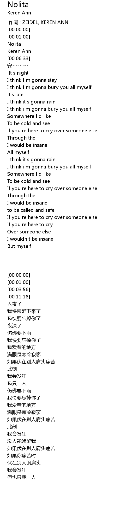 | [00:00.00] | 作词 : ZEIDEL, KEREN ANN |
