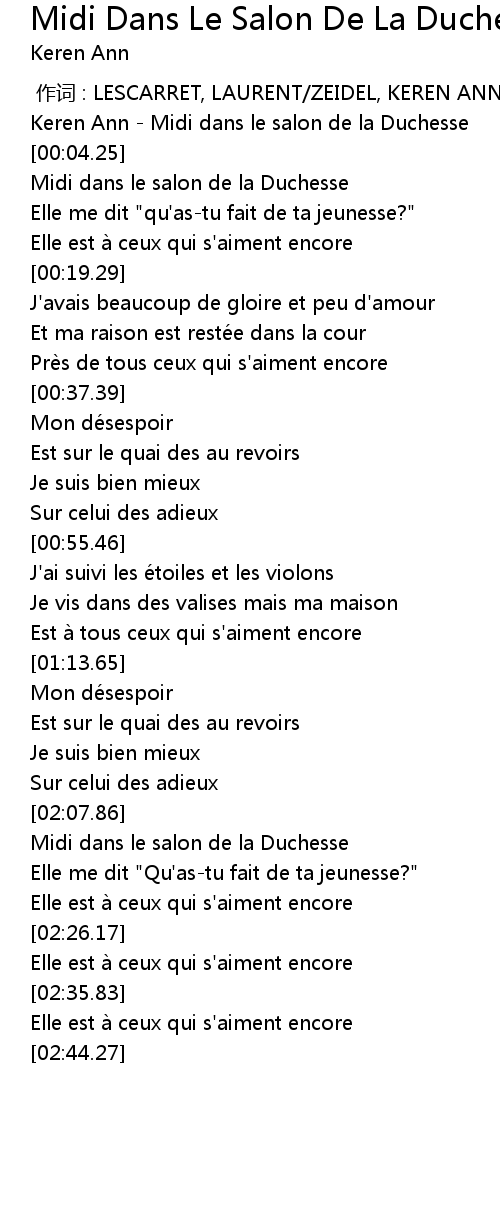 | [00:00.09] | Keren Ann - Midi dans le salon de la Duchesse |