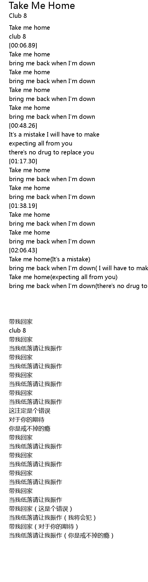 Take me home(It's a mistake) |