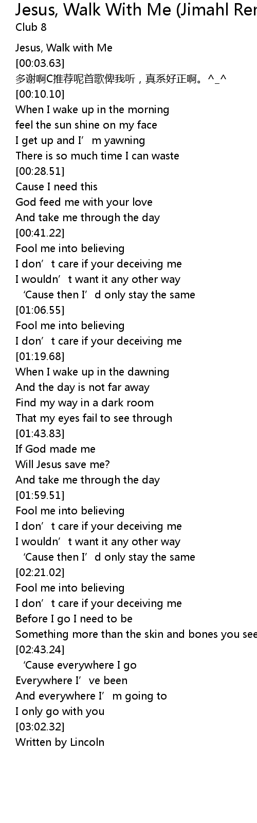 | Song | Jesus, Walk With Me (Jimahl Remix) |