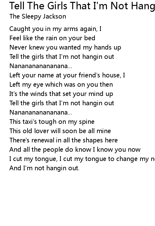 Tell the girls that I'm not hangin out |