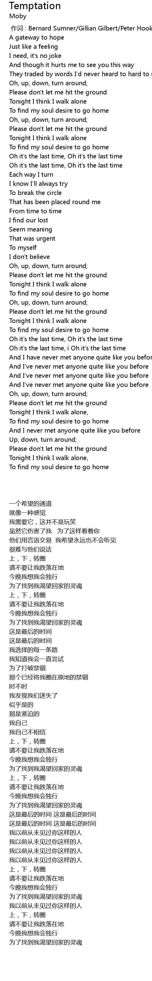 | [00:00.00] | 作词 : Bernard Sumner/Gillian Gilbert/Peter Hook/Stephen Morris |