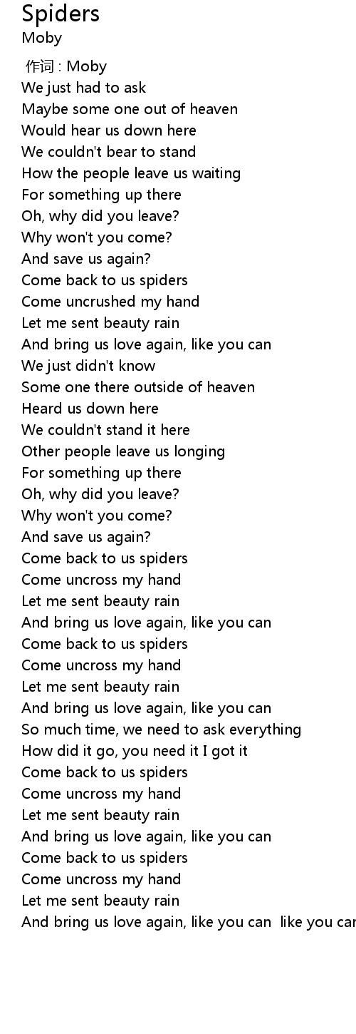 | [01:48.69] | Come back to us spiders |