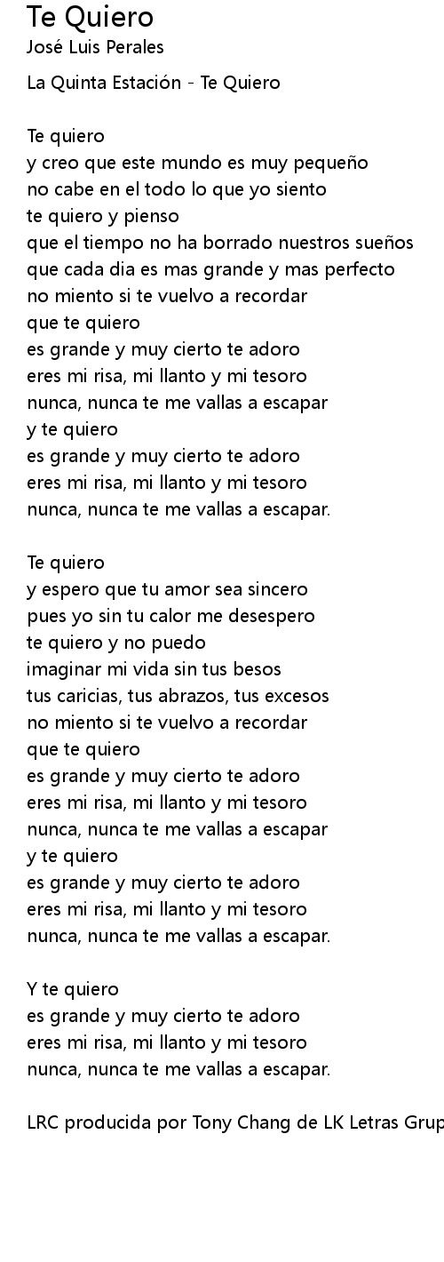 | LRC producida por Tony Chang de LK Letras Grupo |