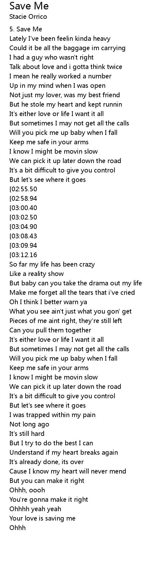[03:21.96][03:02.50][02:04.57][01:06.07] So wont you come and save me, save me