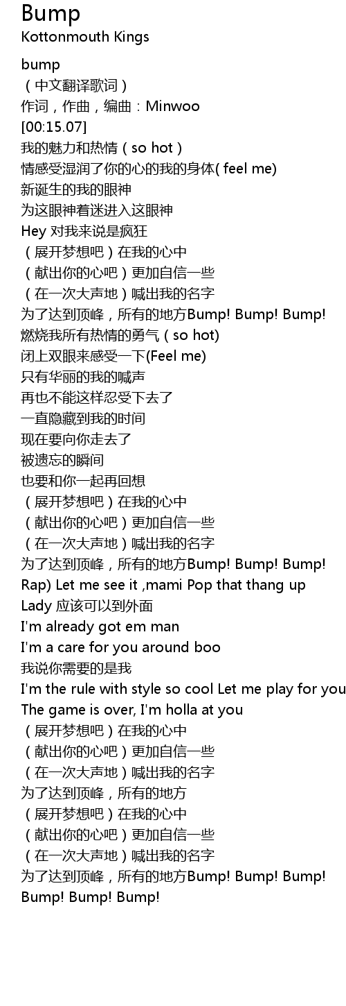| [00:48.03] | 为了达到顶峰,所有的地方Bump! Bump! Bump! |