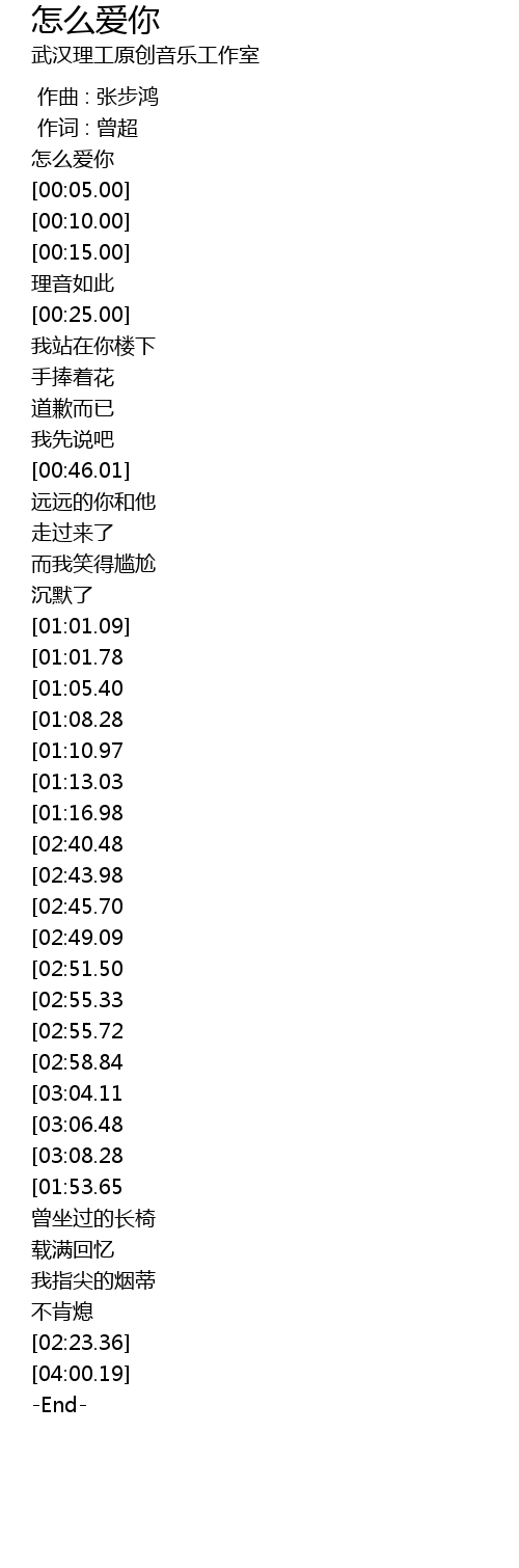 | [03:27.81][02:40.48][01:20.62] | yào zěn me ài nǐ |