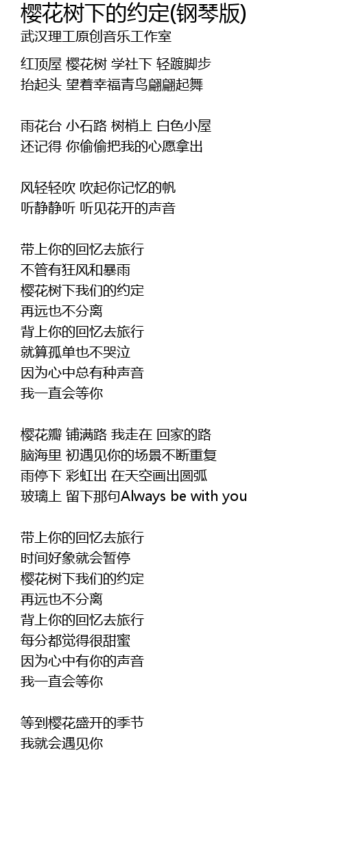 | 樱花瓣 铺满路 我走在 回家的路 | |