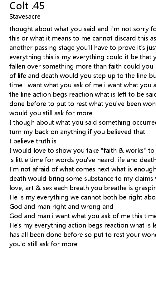 thought about what you said and i'm not sorry for a thing you do not understand this or what it means to me cannot discard this as emotion this is more than another passing stage you'll have to prove it's just opinion in defense of everything this is my everything could it be that you have stumbled tripped and fallen over something more than faith could you prove yourself this is a matter of life and death would you step up to the line but please don't just talk this time i want what you ask of me i want what you ask of me this time step up to the line action begs reaction what is left to be said anything less has all been done before to put to rest what you've been wondering if you could take my life would you still ask for more |