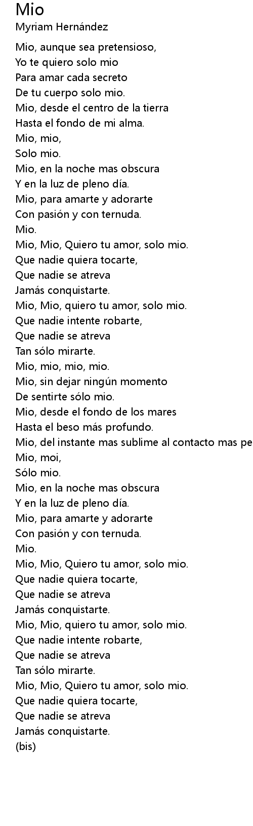 | Mio, Mio, quiero tu amor, solo mio. | |