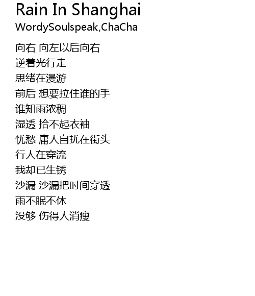 | Song | Rain In Shanghai |