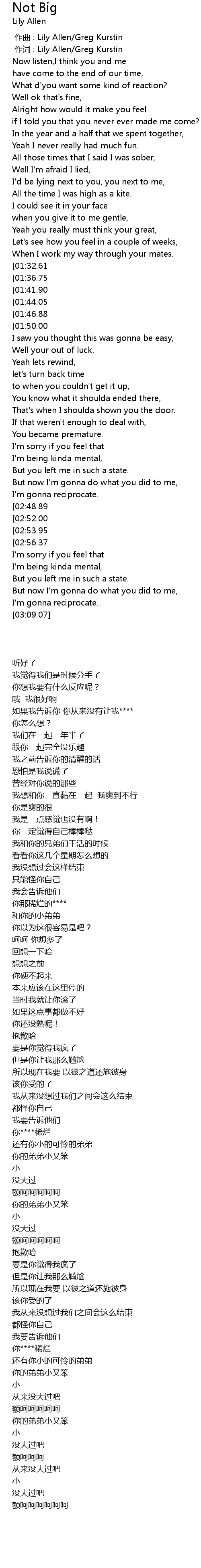 | [00:01.00] | 作词 : Lily Allen/Greg Kurstin |