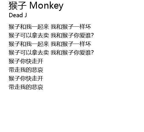 | [00:23.36] | 猴子和我一起来 我和猴子一样坏 |