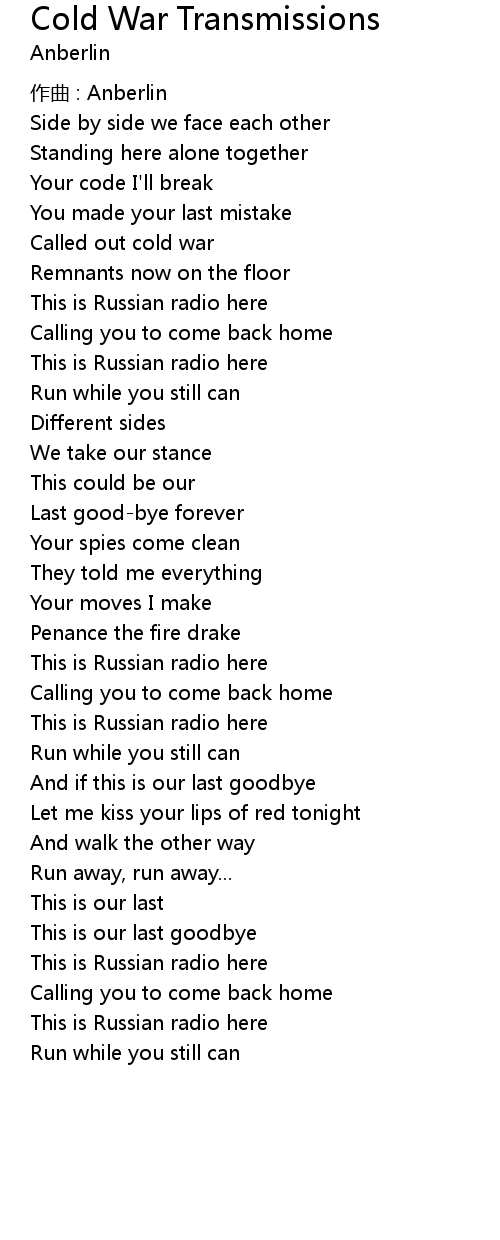 | Song | Cold War Transmissions |