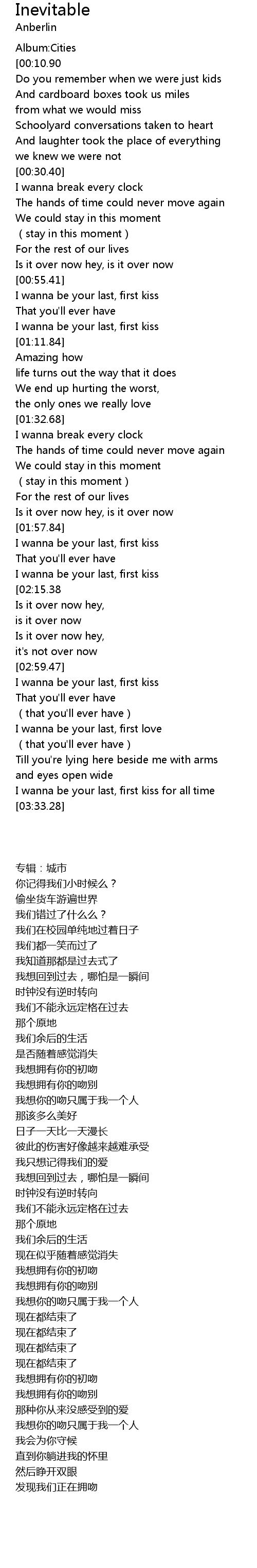 | [03:23.98] | I wanna be your last, first kiss for all time |