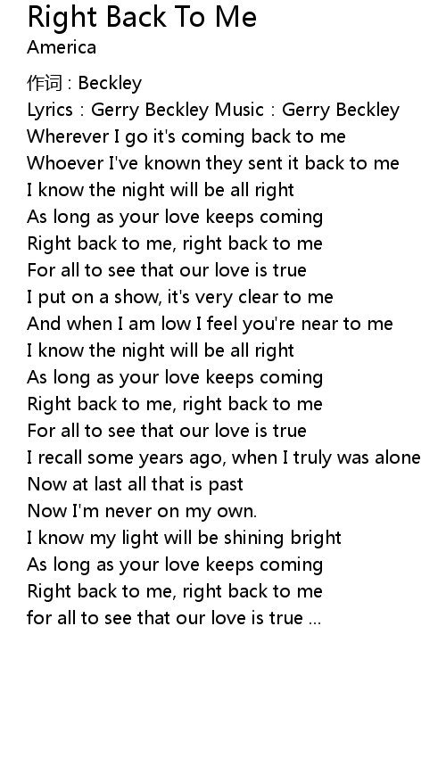 Right Back To Me Lyrics