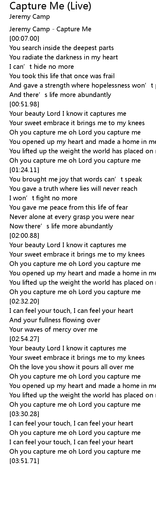 | [00:02.00] | Jeremy Camp - Capture Me |