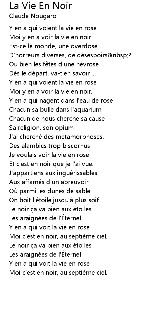 | Song | La Vie En Noir |