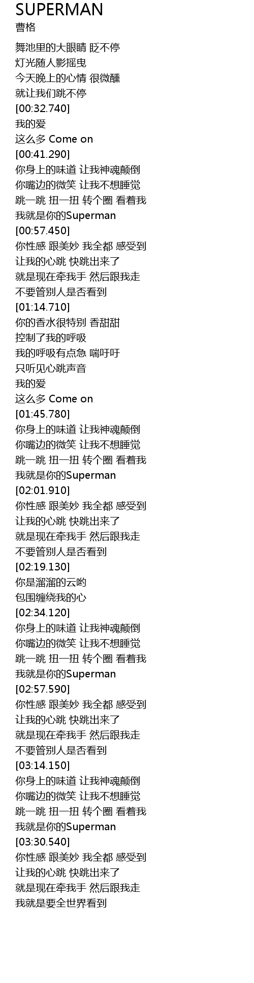 | [00:53.780] | wǒ jiù shì nǐ de Superman |