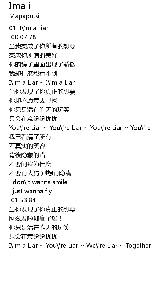 | [00:40.69] | I' m a Liar I' m a Liar |