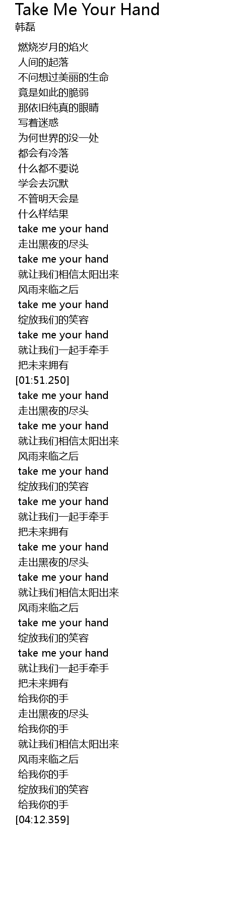 | [03:58.965] | 给我你的手 |
