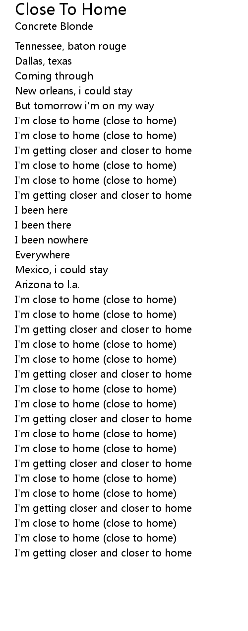 I'm getting closer and closer to home |