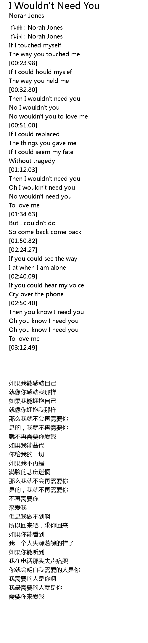 | [00:34.07] | Then I wouldn' t need you |