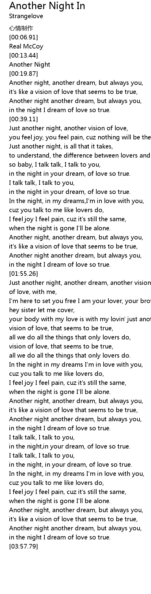 | [03:22.74] | in the night, in your dream, of love so true. |