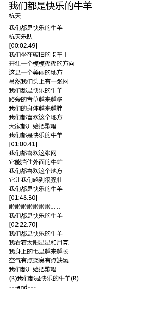 | [01:41.57] | 我们都是快乐的牛羊 |