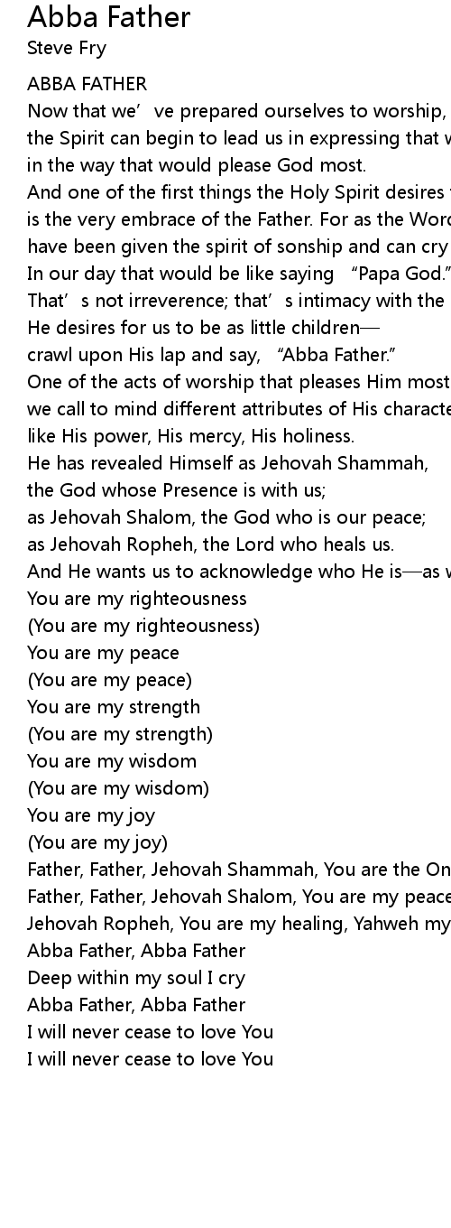 | have been given the spirit of sonship and can cry “Abba Father.” | |