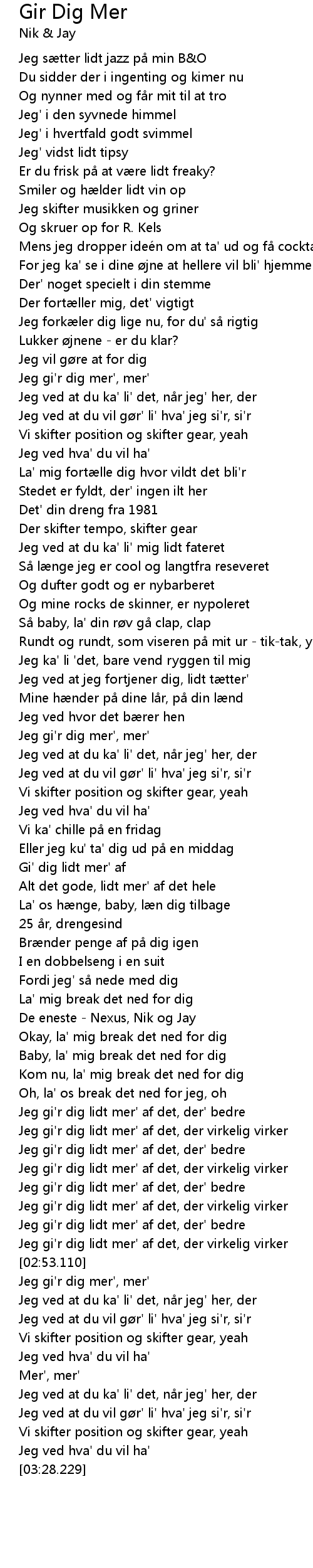 | [02:55.750] | Jeg gi' r dig mer', mer' |