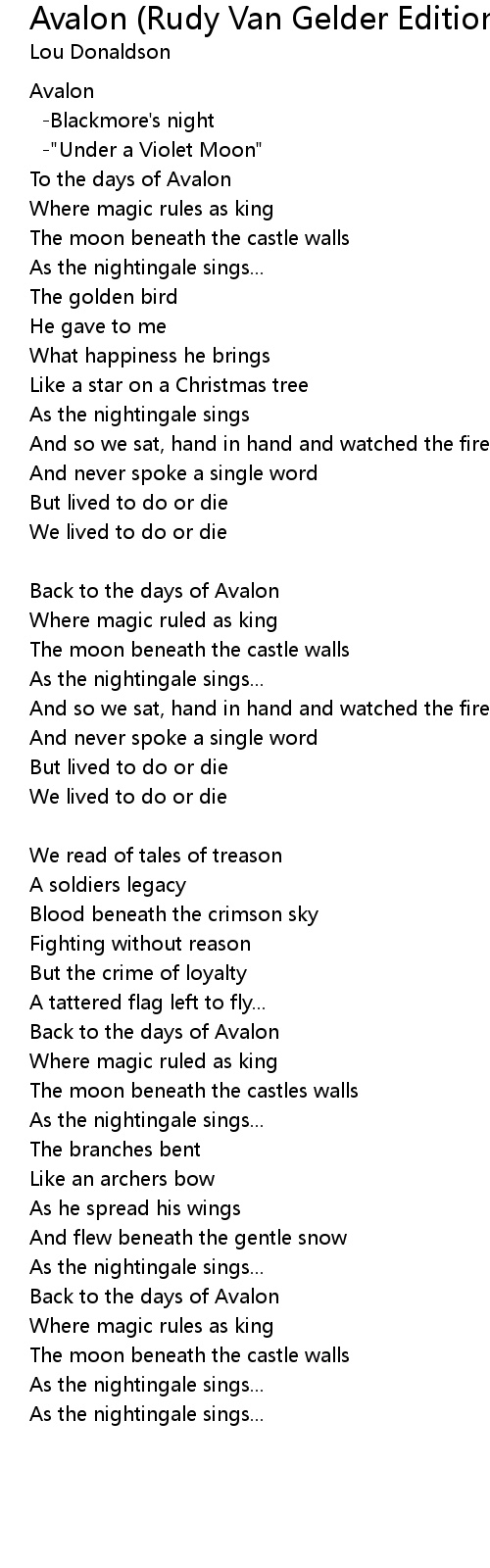 To the days of Avalon |