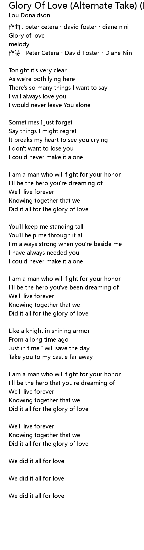 | Glory of love | |