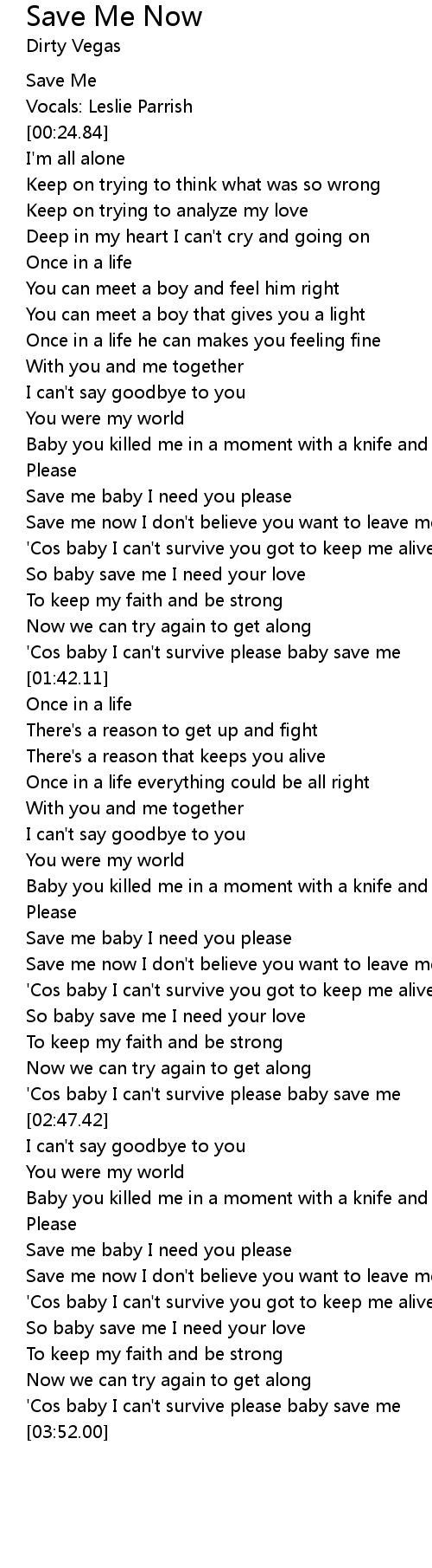 [03:46.46] 'Cos baby I can't survive please baby save me