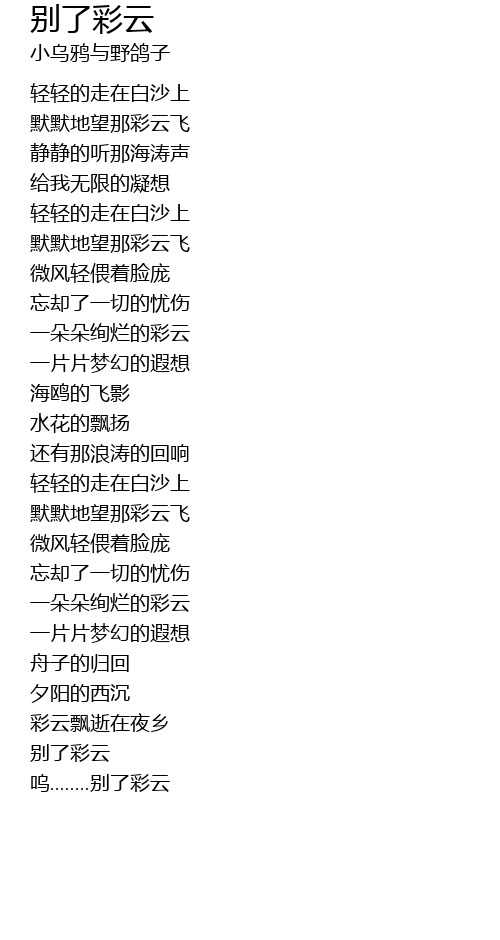 | [02:37.96] | 彩云飘逝在夜乡 |