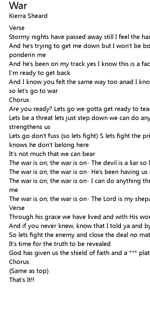 And I know you felt the same way too anad I know you're tired of going through so let's go to war |