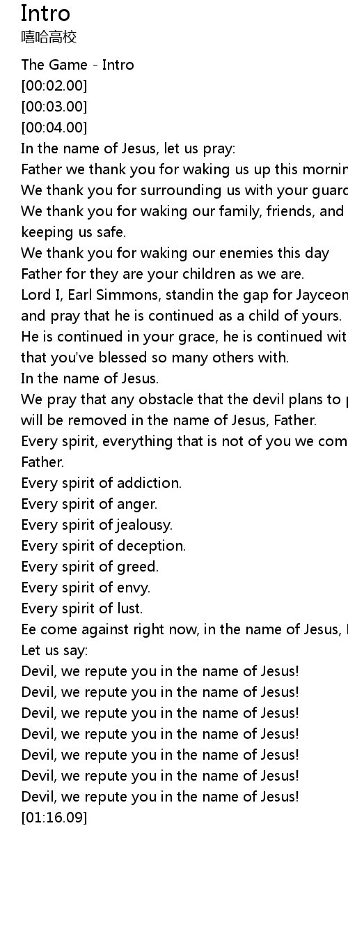 | [00:59.90] | Devil, we repute you in the name of Jesus! |