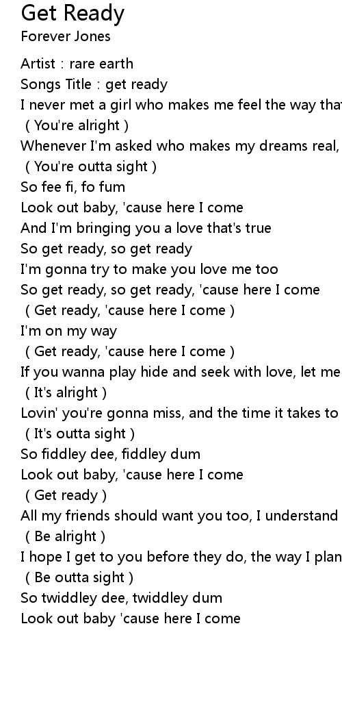 | Song | Get Ready |