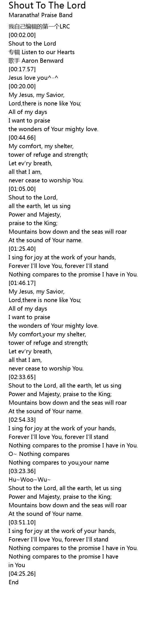 | [02:34.15] | Shout to the Lord, all the earth, let us sing |
