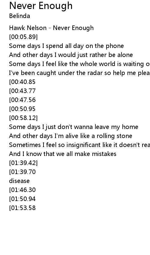 | [00:01.12] | Hawk Nelson - Never Enough |