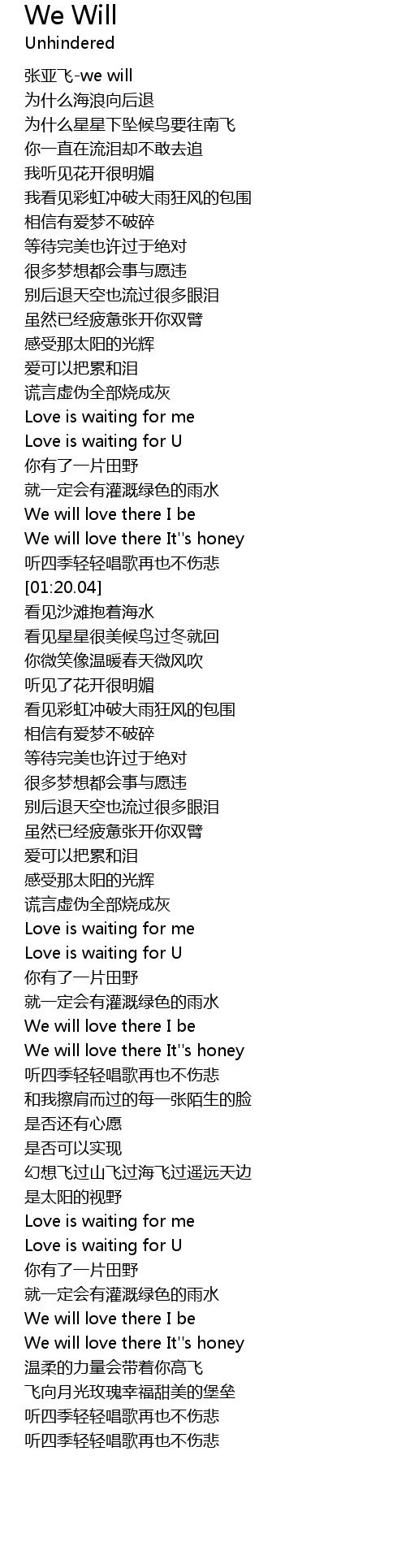 | [00:02.50] | zhāng yà fēi we will |