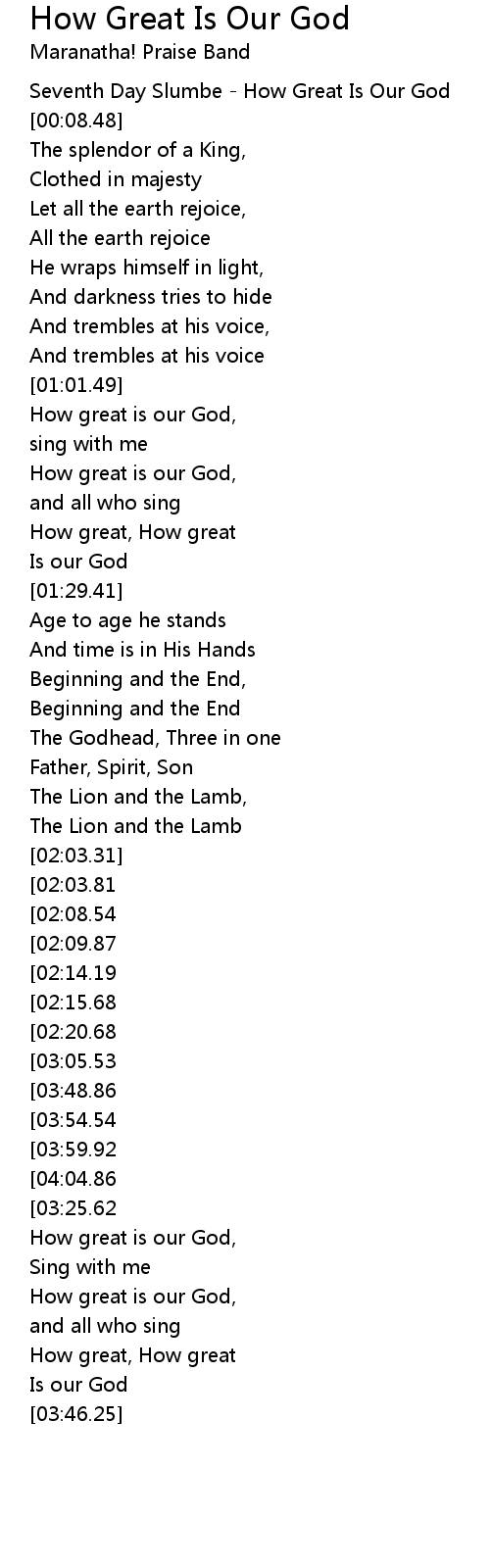 [04:27.47][04:04.86][03:22.50] Is our God