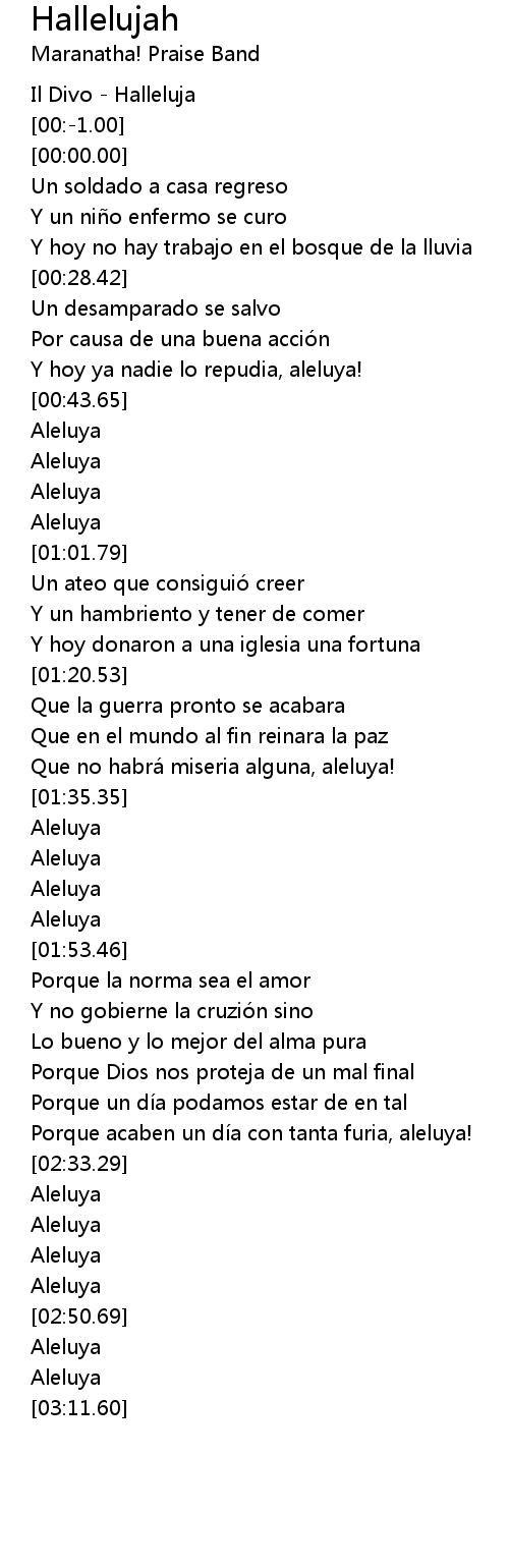 | [02:26.71] | Porque acaben un di a con tanta furia, aleluya! |
